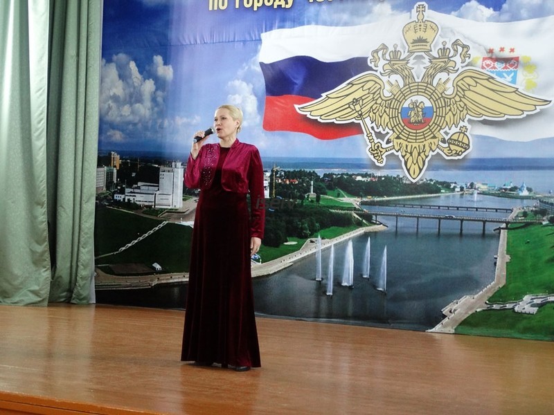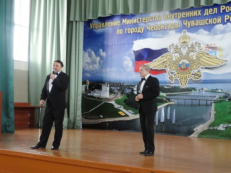 Артисты Чебоксарской муниципальной певческой капеллы «Классика» исполнили патриотические песни, посвященные России, героям разных времен: Полонез «Слава русскому народу» и «Славься» М. Глинки, современные патриотические произведения «Служить России», «Выйду ночью в поле с конем» и «Ходили мы походами». Солисты Анатолий Данилов «Он вчера не вернулся из боя», Александр Галин, Геннадий Петров «Русский парень», Марина Тарасова посвятила песню «Младший лейтенант» всем тем, кому в тот день были вручены первые офицерские погоны младшего лейтенанта. Также своим творчеством порадовали Татьяна Карпова, Светлана Ефремова, Наталия Петрова, Татьяна Чекушкина, Михаил Иванов. Вела программу Александра Васильева. Прекрасная концертная программа и мастерство артистов создали доброе, праздничное настроение в сердцах полицейских. В завершении праздничного концерта полковник полиции поблагодарил профессиональный коллектив, а директору капеллы «Классика» и по совместительству члену Общественного совета Надежде Валентиновне Молошниковой вручил Благодарственное письмо.