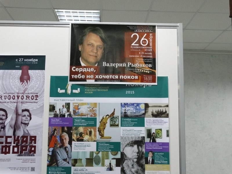 В Чувашском государственном художественном музее состоялся концерт Заслуженного артиста Чувашской Республики Валерия Рыбакова. Его организаторами выступили управление культуры администрации города Чебоксары, Чебоксарская муниципальная певческая капелла «Классика».
