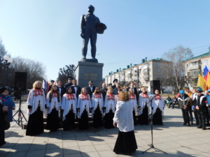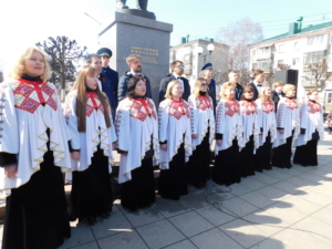 Чебоксарская муниципальная певческая капелла «Классика» под управлением Александры Васильевой у памятника Андрияну Николаеву.